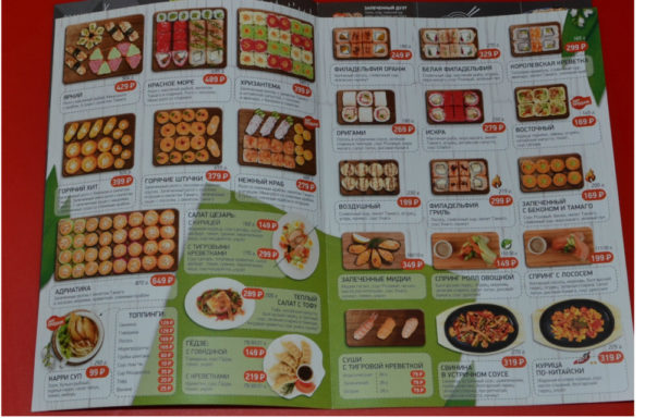 Обычно берем 4 порции, на двоих. По одной как-то мало. В наш заказ вошли роллы «Мидии», «Лосось», «Угорь» и «Тунец». Всего вышло на 616 рублей. Ценники обычные, некоторые сеты, например, дешевле, чем в «Киото».
