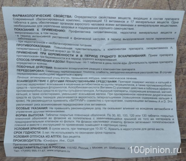 Vitrum Vitamins and Minerals имеет простую инструкцию: